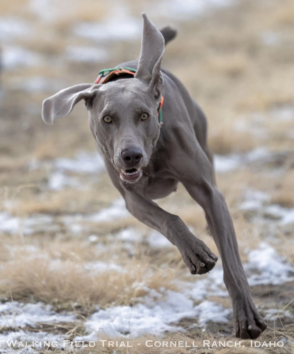 Successfully looping the show ring are new Grand Champion Storm and new Champions Cruise and Georgia, Mike and Tegan navigated all obstacles in their way to a AAC Agility Championships, in field trial world Raffi notched a 3 point Amateur Limited Gun Dog major stake win and Avy a 4 point major Open Limited major stake win and in NAVHDA competition the kiddo Filly aced her Natural Ability test with a maximum 112 score. Right on track was ourstar Lola who sniffed her way to an AKC Tracking Dog Excellent title and in the obedience ring Ocean and Kenni both made a lot of hay including High in Trials from Open B with scores of 199 and 197 respectively. Way to be versatile Weimaraners!