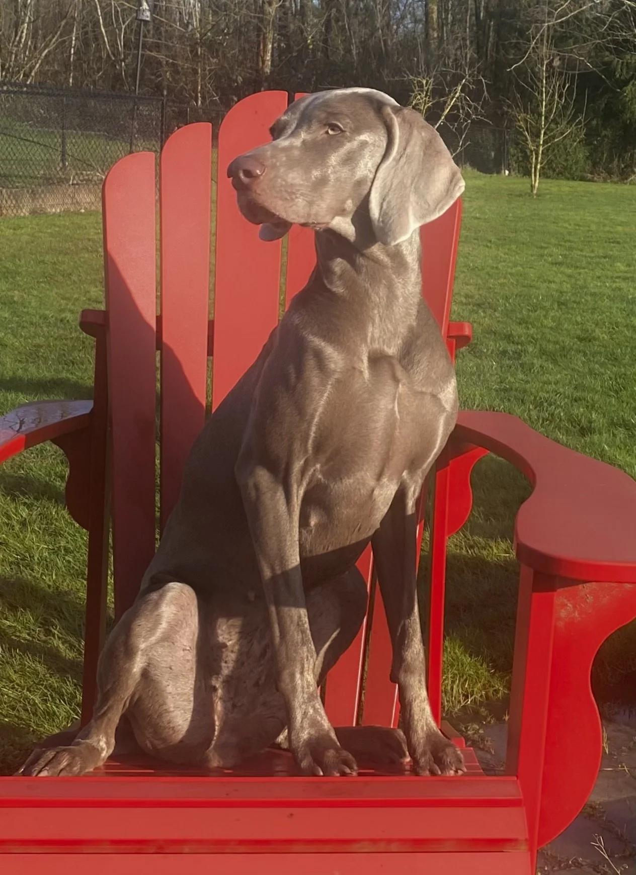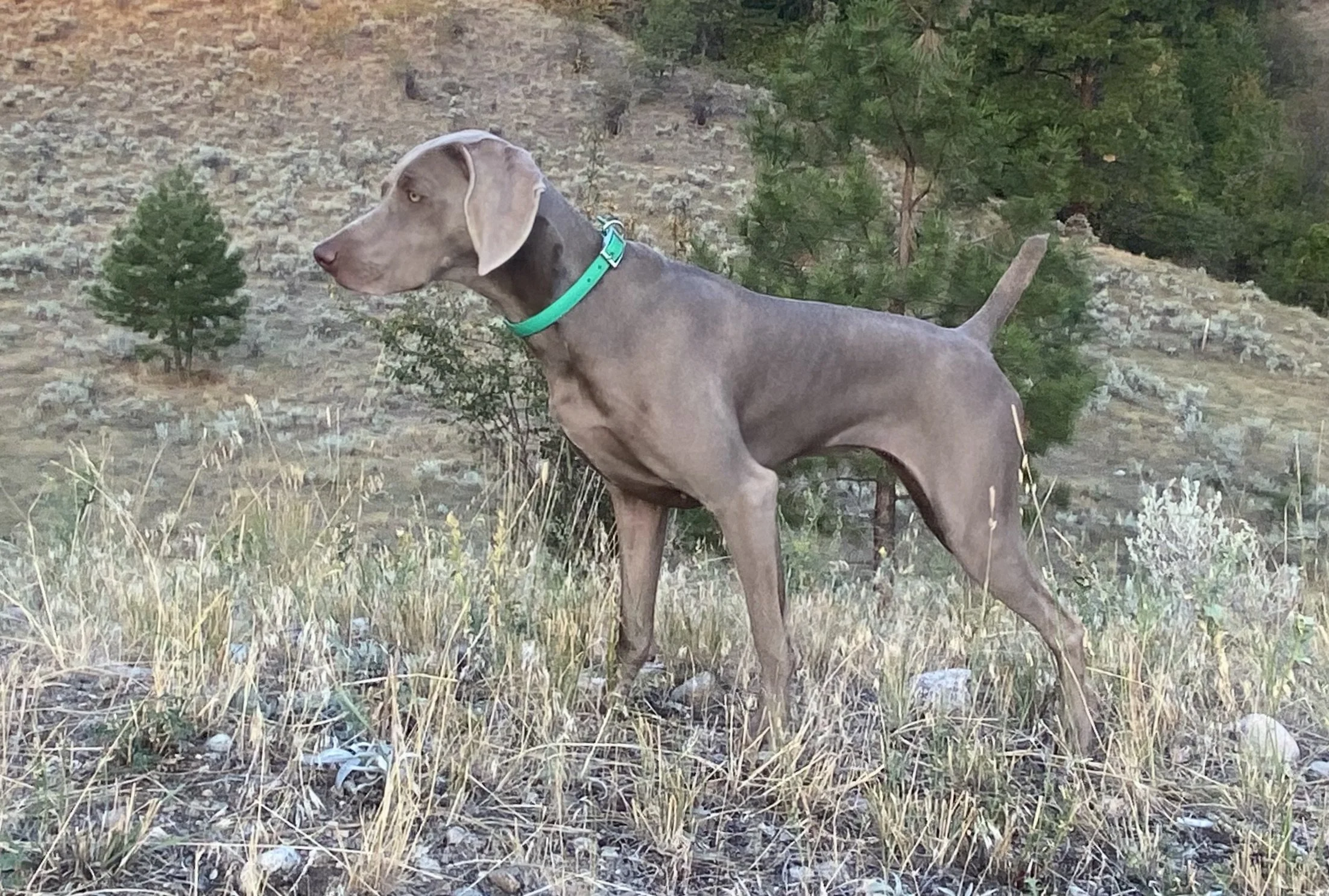 Lzzy is beautiful, fun loving, athletic and very sweet natured. She used her looks to attain a show championship in two weekends with Best of Breed and Sporting Group placements along the way. She lives to hunt upland birds and to fetch waterfowl, and, when they won’t let her out of the yard, she makes do with pointing rabbits for hours on end.